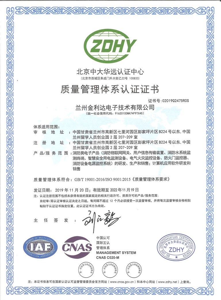 此次顺利通过三标体系认证,体现出兰州金利达电子技术有限公司在提升企业管理水平、提高产品和服务质量、增强企业市场竞争力的道路上迈出了崭新的一步,彰显了兰州高新区企业的良好形象。